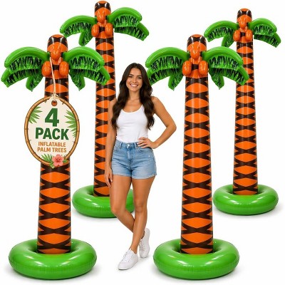 4E’s Novelty 4-Pack Giant Inflatable Palm Trees – 5.5 Ft Tall Hawaiian Luau Party & Beach Pool Photo Props for Kids & Adults