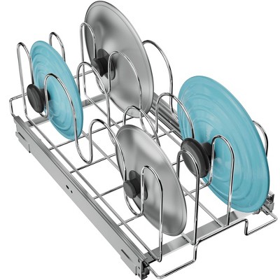 11in. W x 21in. D ROOMTEC Slide Out Pan and Pot Lid Organizer for Cabinet Pull Out Pot Lid Rack Pantry Cutting Board Bakeware Cookware Holder