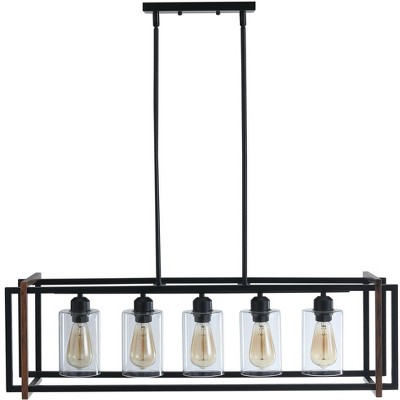 Dewdrop 34.53'' Industrial Style Kitchen Island Light 5 Light Rectangular Linear Chandelier Clear Glass Black Frame ETL For Dining Table Lighting