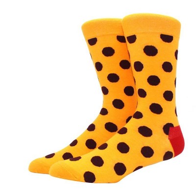 Orange (Gold Yellow) with Black Polka Dots Socks (Men's Sizes, Adult Large) from the Sock Panda