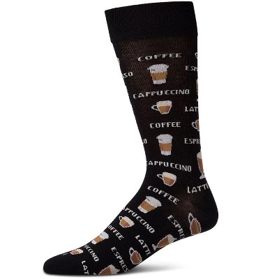 Memoi Coffee Time Men's Bamboo Blend Novelty Crew Sock Black 10-13