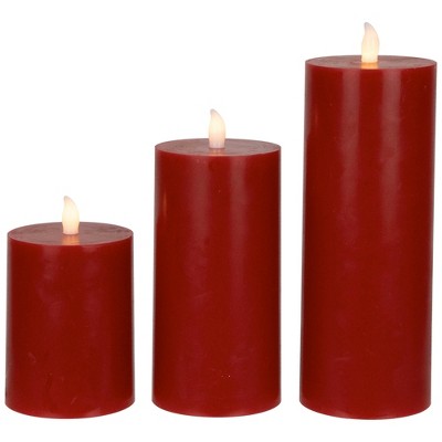 Northlight LED Flameless Flickering Wax Pillar Candles - 8" - Red - Set of 3