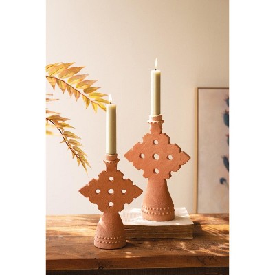 Storied Home Handmade Vintage Reproduction Terra-cotta Mushroom Shaped Candle Holder with Cut-Outs, Natural