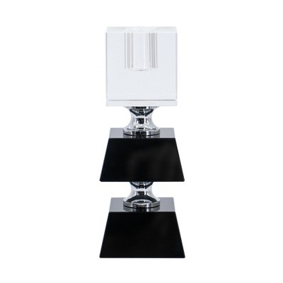 HomeRoots 5" Clear Crystal Geometric Tabletop Candelabra Candle Holder