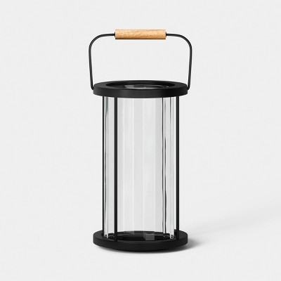 12.5"x8.2" Metal and Glass Outdoor Pillar Candle Holder Lantern Black - Threshold™