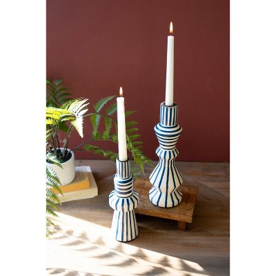 Wooden Candle Holders for Tapers – Blue Hand Painted 2x Set of 2 by Kalalou
