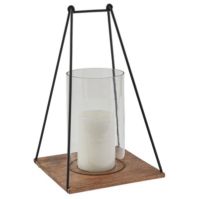 HomeRoots 18" Black And Natural Distressed Glass Metal And Wood Tabletop Lantern Candle Holder