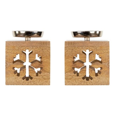 Northlight Snowflake Box Wooden Christmas Tealight Holders - 4.75" - Set of 2