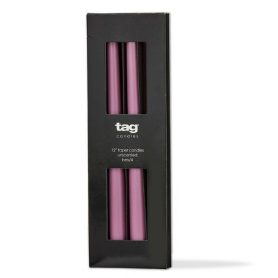tag Color Studio 12" Traditional Taper Unscented Smokeless Paraffin Wax Candle Lilac Set of 4 Burn Time 8 hrs.