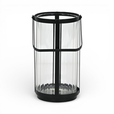 HomeRoots 9" Clear And Black Glass And Metal Tabletop Lantern Candle Holder