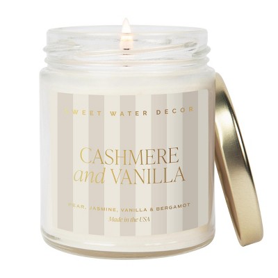 Sweet Water Decor Patterned Cashmere & Vanilla 9oz Clear Jar Candle with Gold Lid