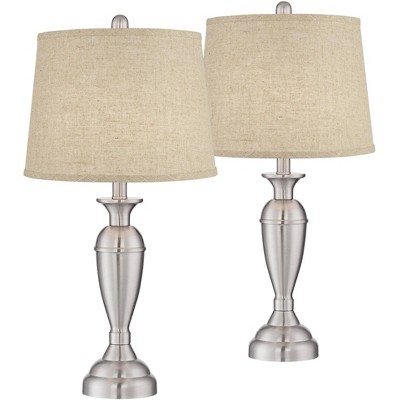 Regency Hill Blair Traditional Table Lamps 25" High Set of 2 Brushed Nickel Burlap Drum Shade for Bedroom Living Room Bedside Nightstand Office House