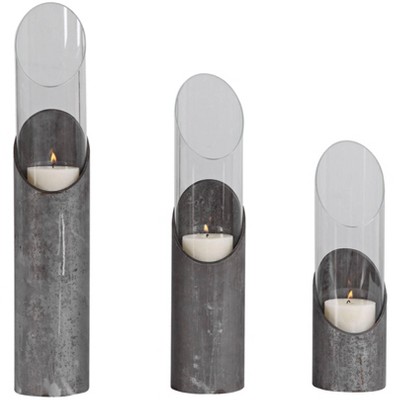 Uttermost Karter Raw Iron Angular Pillar Candle Holders Set of 3