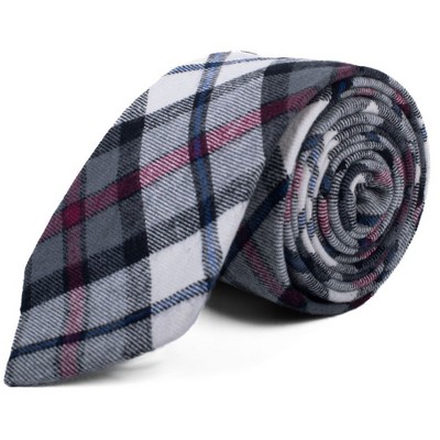 TheDapperTie Men's Gray, Cream And Red Stripe Knit 2.5 Inch Wide And 58 Inch Long Necktie
