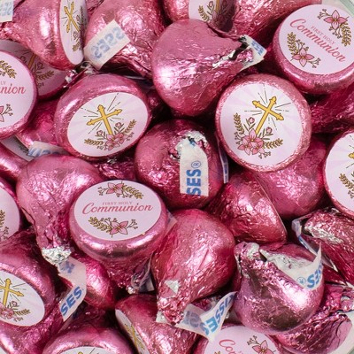 34 Pcs Girl 1st Holy Communion Candy Party Favors Wrapped Hershey's Miniatures Chocolate - Pink