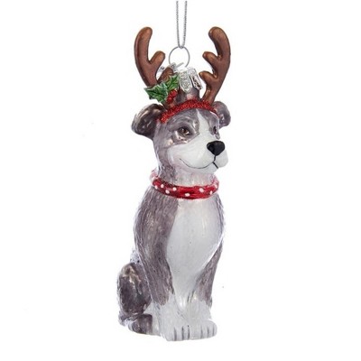 Kurt Adler Noble Gems Glass Ornament for Christmas Tree, Pitbull with Antlers, 4"