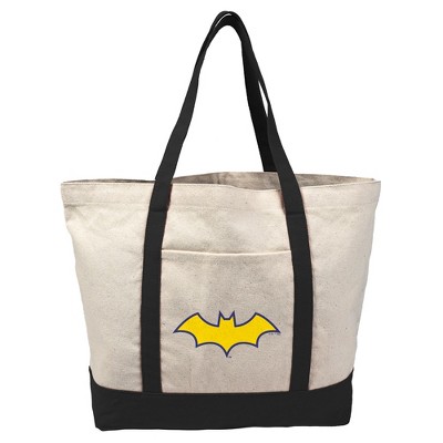 Batman Batgirl Logo Canvas Tote Bag With External Pocket, Reusable Shoulder Bag for Shopping, School, Beach, Black
