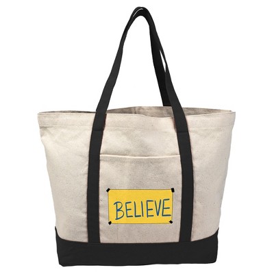 Ted Lasso Believe Sign Canvas Tote Bag With External Pocket, Reusable Shoulder Bag for Shopping, School, Beach, Black