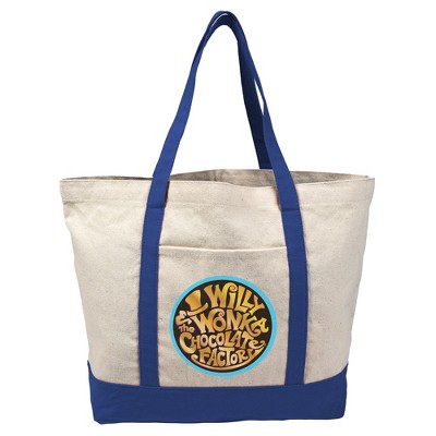 Willy Wonka Logo Canvas Tote Bag With External Pocket, Reusable Shoulder Bag for Shopping, School, Beach, Black