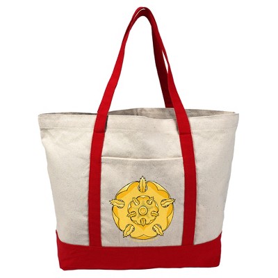 Game of Thrones Tyrell Sigil Canvas Tote Bag With External Pocket, Reusable Shoulder Bag for Shopping, School, Beach, Red