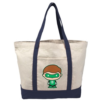 Justice League Athletic Shield Logo Canvas Tote Bag With External Pocket, Reusable Shoulder Bag for Shopping, School, Beach, Navy