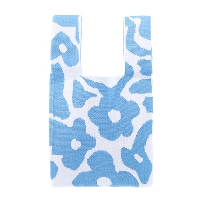 Unique Bargains Reusable Mesh Net Grocery Tote Bags Flowers Gray White Green 14.17"x7.87" 1 Pc