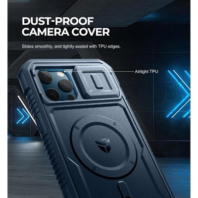 SURITCH for iPhone 13/14 Case with Magnetic Camera Slide Cover and Adjustable Kickstand, Compatible with MagSafe, Shockproof Bumper Case