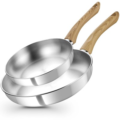 KOCH SYSTEME CS 8" & 10" Stainless Steel Frying Pan Set with Heat-resistant Handle, Triply Base Induction Pans Set, Fast & Even Heat, Dishwasher Safe