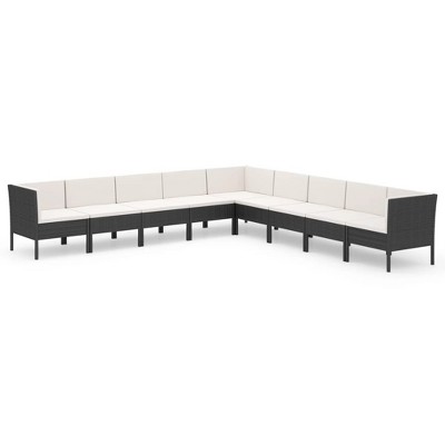 vidaXL Patio Sofa Set with Cushions Corner Sofa Sections 11 Piece Poly Rattan - Black and Cream
