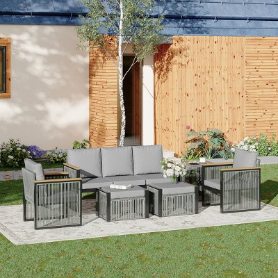 EROMMY 6 Pieces Modern Outdoor Conversation Set Sectional Sofa With Ottomans And Coffee Table