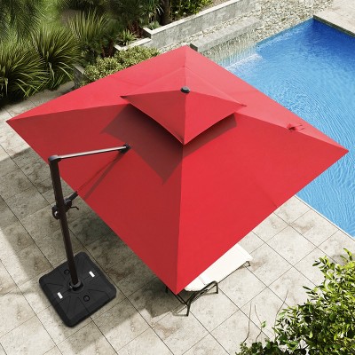 Crestlive Products Double Top 9X11.5 FT Offset Patio Cantilever Umbrella 360° With 350lbs Weighted Base