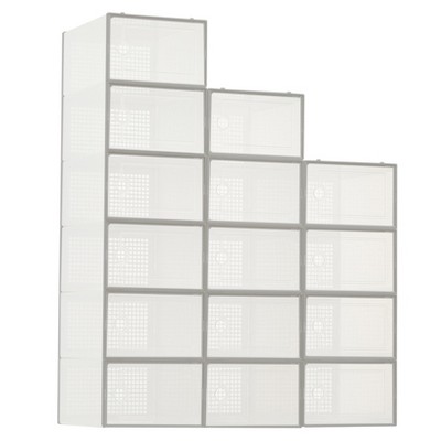 6 Pack Shoe Storage Box, Plastic Stackable Shoe Organizer for Closet, Space Saving Foldable Shoe Rack Sneaker Container Bin Holder White