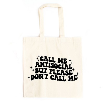 City Creek Prints Call Me Antisocial Canvas Tote Bag - 15x16 - Natural