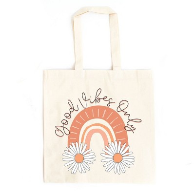 City Creek Prints Boho Good Vibes Only Canvas Tote Bag - 15x16 - Natural