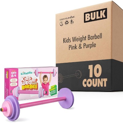 Modern Innovations Kids Barbell Weight Set 10 Pack Toy Workout Weights for Toddlers Fun Fitness Pink Purple