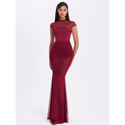 Miss Circle Fabienne Burgundy Mesh Cap Sleeve Mermaid Gown