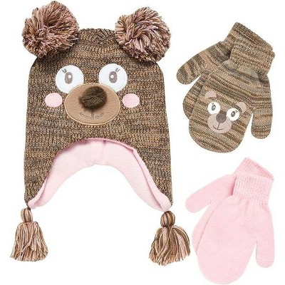 Girls Critter Winter Hat and 2 Pair Gloves or Mittens (Toddler/Little Girls)