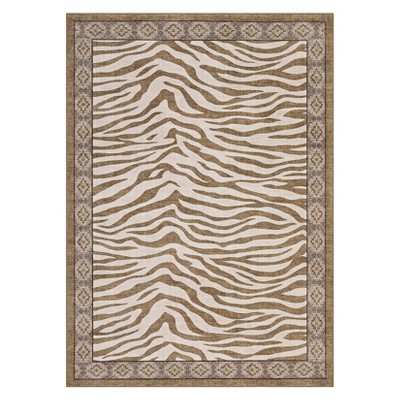 Coolmee Washable Rug Rustic Animal Collection Animal Inspired with Border Design Area Rug Red Brown