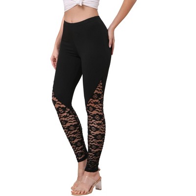 INSPIRE CHIC Women's Lace See Through Elastic Waist Stretchy Slim Fit Leggings