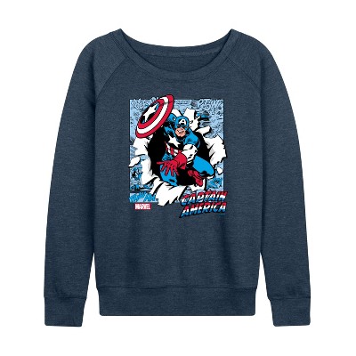 Women's - Marvel - Captain America Comic Book Panels Lightweight French Terry Wide Neck Long Sleeve Graphic Shirt