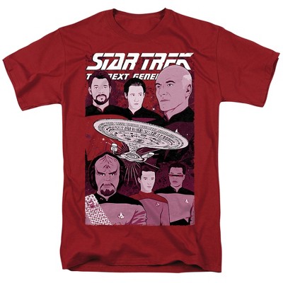 Star Trek Captain And Crew Adult T-Shirt Cardinal