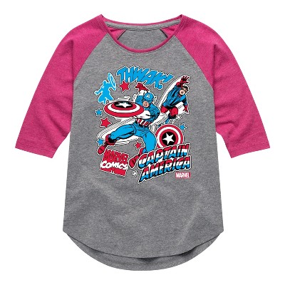 Girls' - Marvel - Captain America Rogers Shirt Tail Raglan Graphic T-shirt