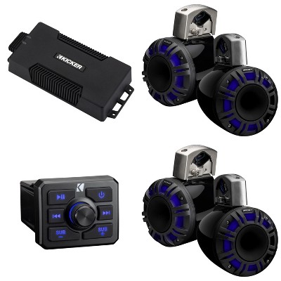Kicker Power Sports Bundle, Bluetooth Source, 4 Channel Amp, (2 pair ) 6.5" LED Tower Speakers