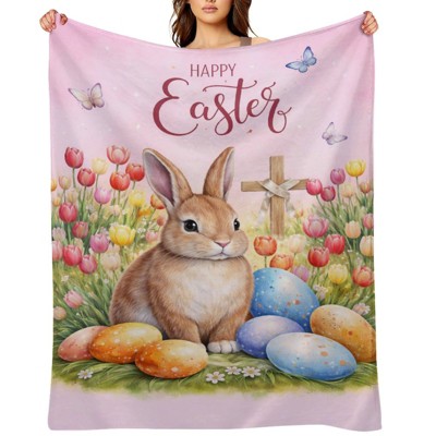 Easter Throw Blanket for Couch, Bunny Blanket for Bedroom and Living Room, Easter Gifts for Women, Family, Friends, Teachers, Cowokers 30x40 inches
