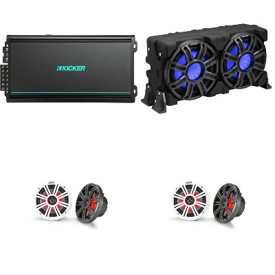 Kicker Marine (2) 45KM654L 6.5", 48KMA6006 6 Channel Amp & 51MWLE104 10" Loaded Enclosure, LED Marine Audio Upgrade