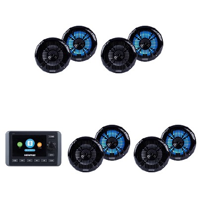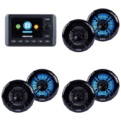 Memphis Marine Boat Audio Package - SMC3 Waterproof Receiver with Zone Control & 4 Pairs of Black 6.5" Slim Fit Marine Speakers