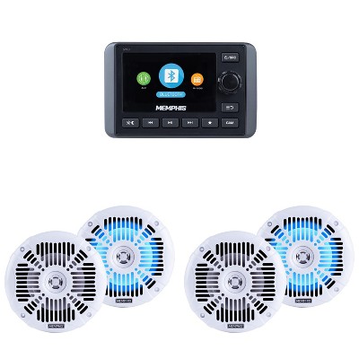 Memphis Marine Boat Audio Package - SMC3 Waterproof Receiver with Zone Control & 4 Pairs of White 6.5" Slim Fit Marine Speakers