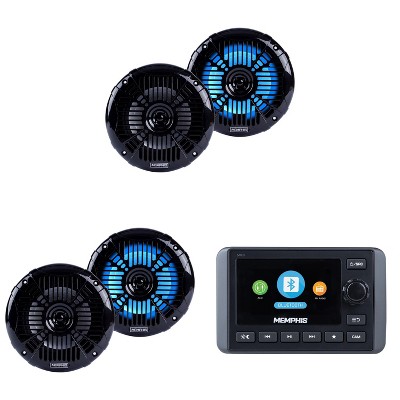 Memphis Marine Boat Audio Package - SMC3 Waterproof Receiver with Zone Control & 2 Pairs of Black 6.5" Slim Fit Marine Speakers
