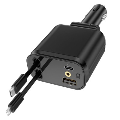 Itopfox 66W Retractable Car Charger with Starlight, 4-in-1 Fast Charging USB C Adapter, 2 Retractable Cables for iPhone, Galaxy, Pixel