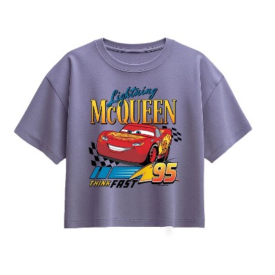 Girls' - Cars - Lightning McQueen Think Fast Short Sleeve Boxy Graphic T-Shirt
